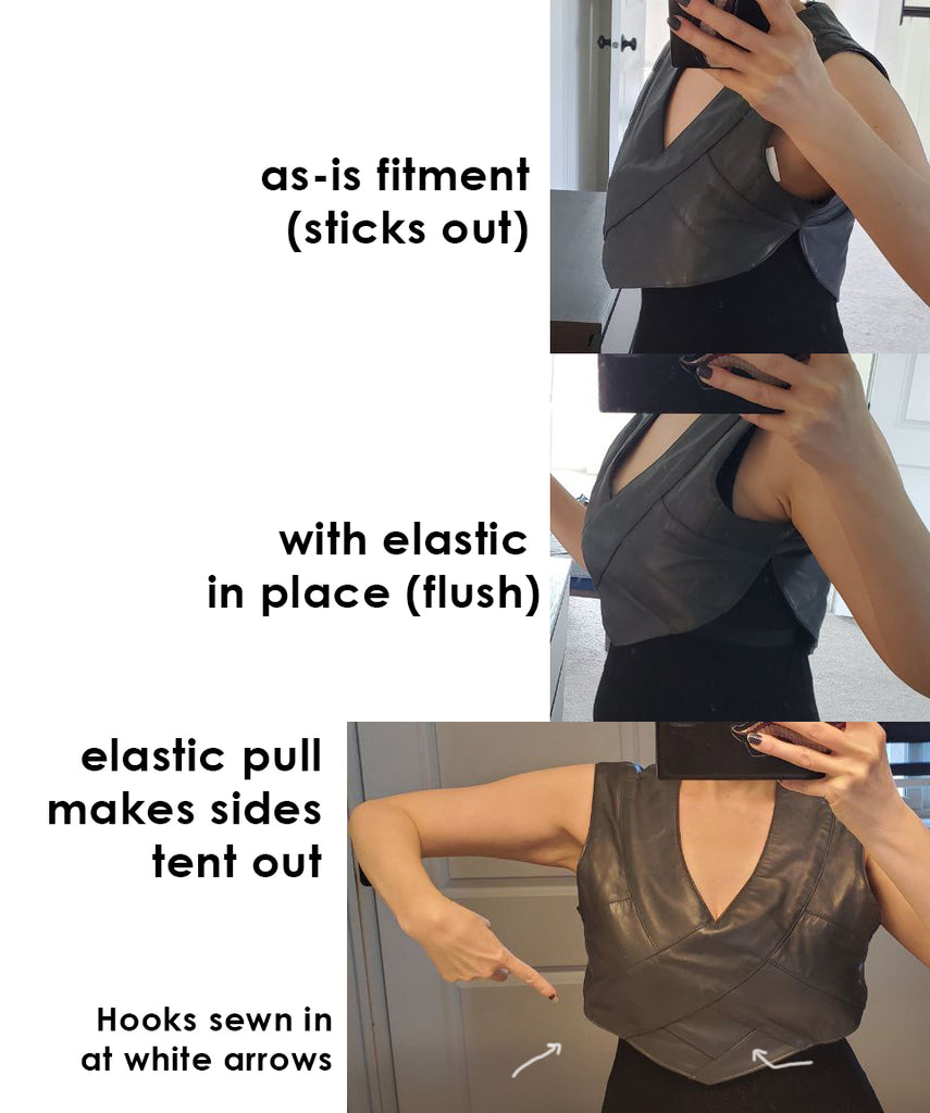 • Leather patch with velcro on right hem torso (position and style as per mock)