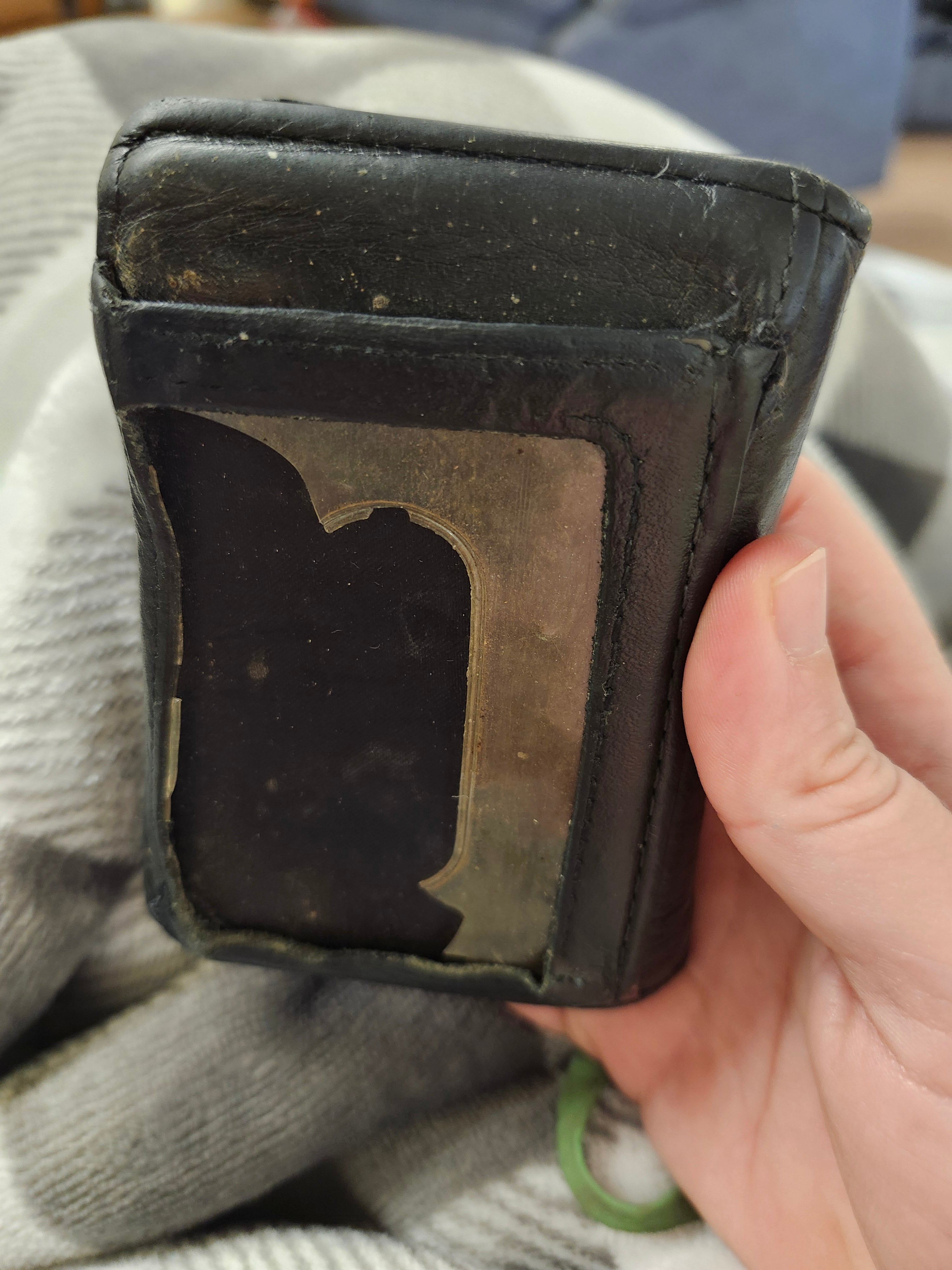 • One large transparent ID window on the front of the wallet when folded (as per references & mock)