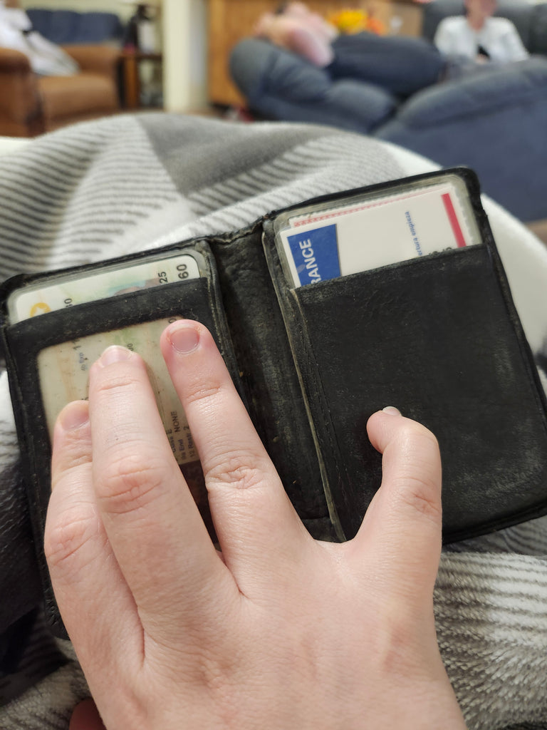 • Two slip-in pockets beneath the ID window and card slots in the inner panel of the wallet when unfolded (as per references & mock)