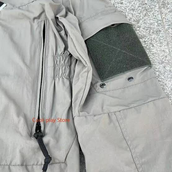• Outside Pockets: 2 long zipper pockets, Arm flap pockets on each arm with pen loops