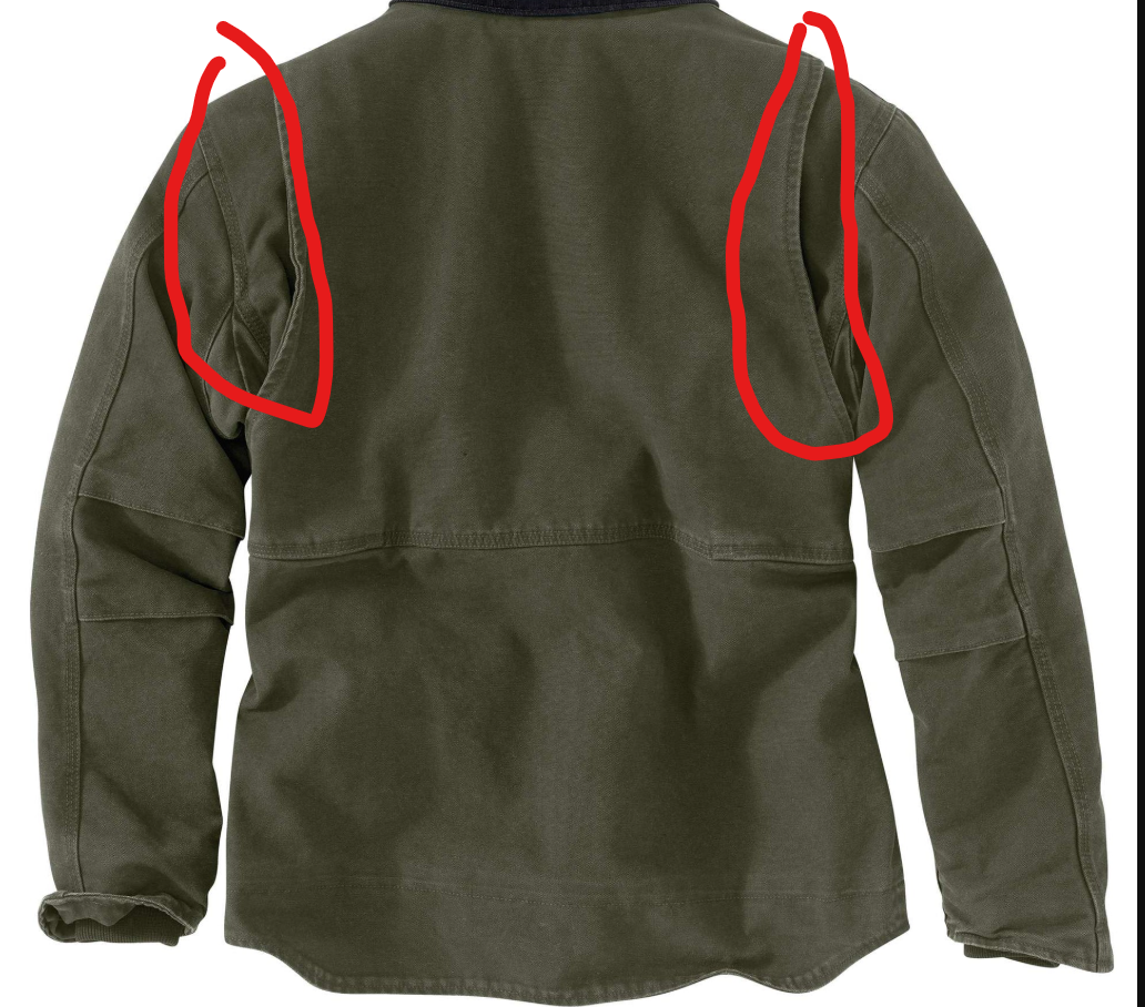 • Collar Style: Straight collar with strap (a pocket on the back of the collar for hood)