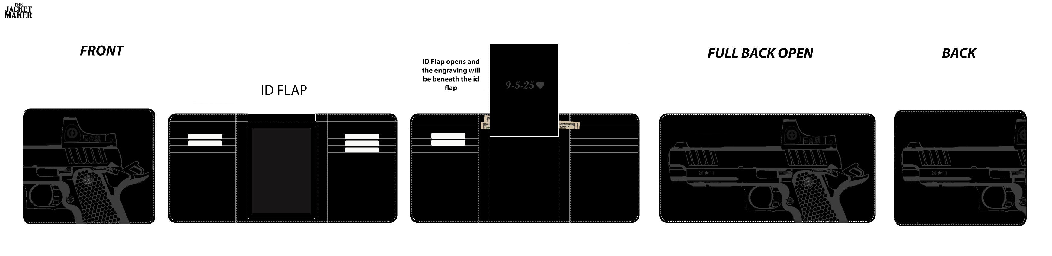 • Engraving at the back and beneath the ID flap of the wallet (as per mock)