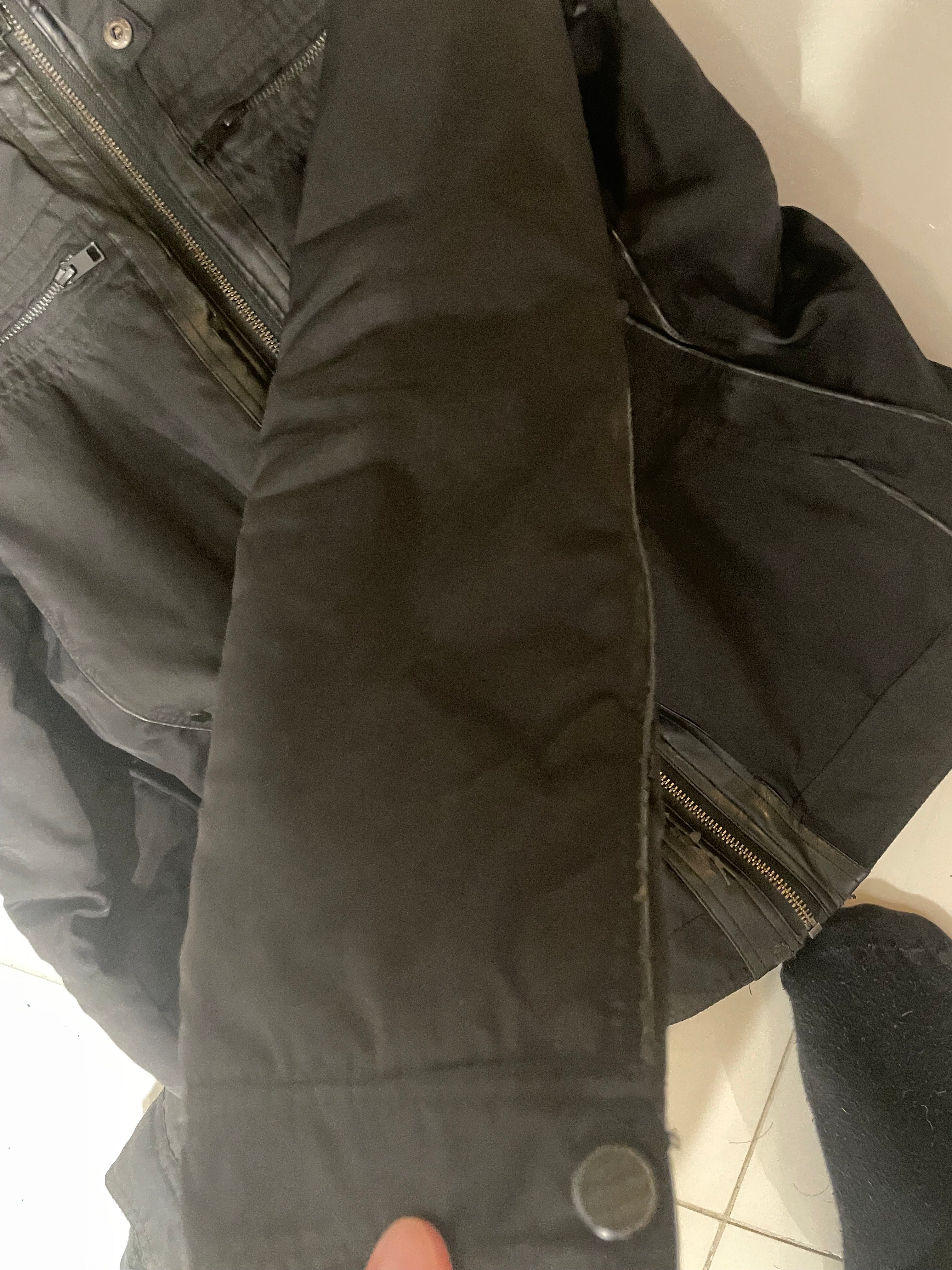 • Whilst the jacket as a whole is black. The leather parts are black, but the rest seems slightly lighter in colour