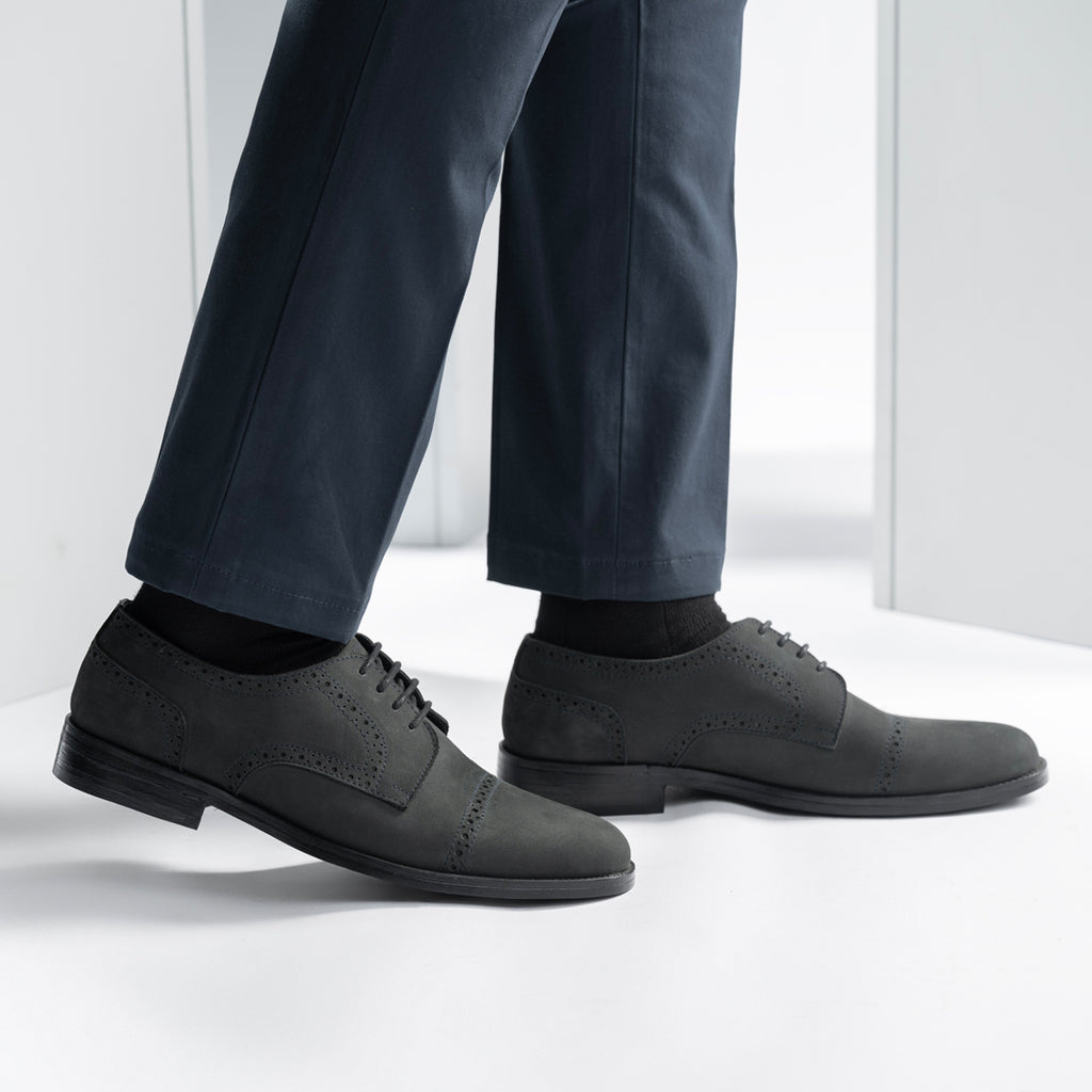 Dirk Brogues Derby Matte Black Nubuck Leather Shoes - StudGuard