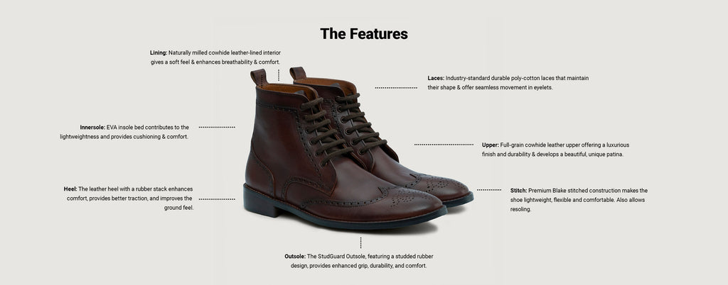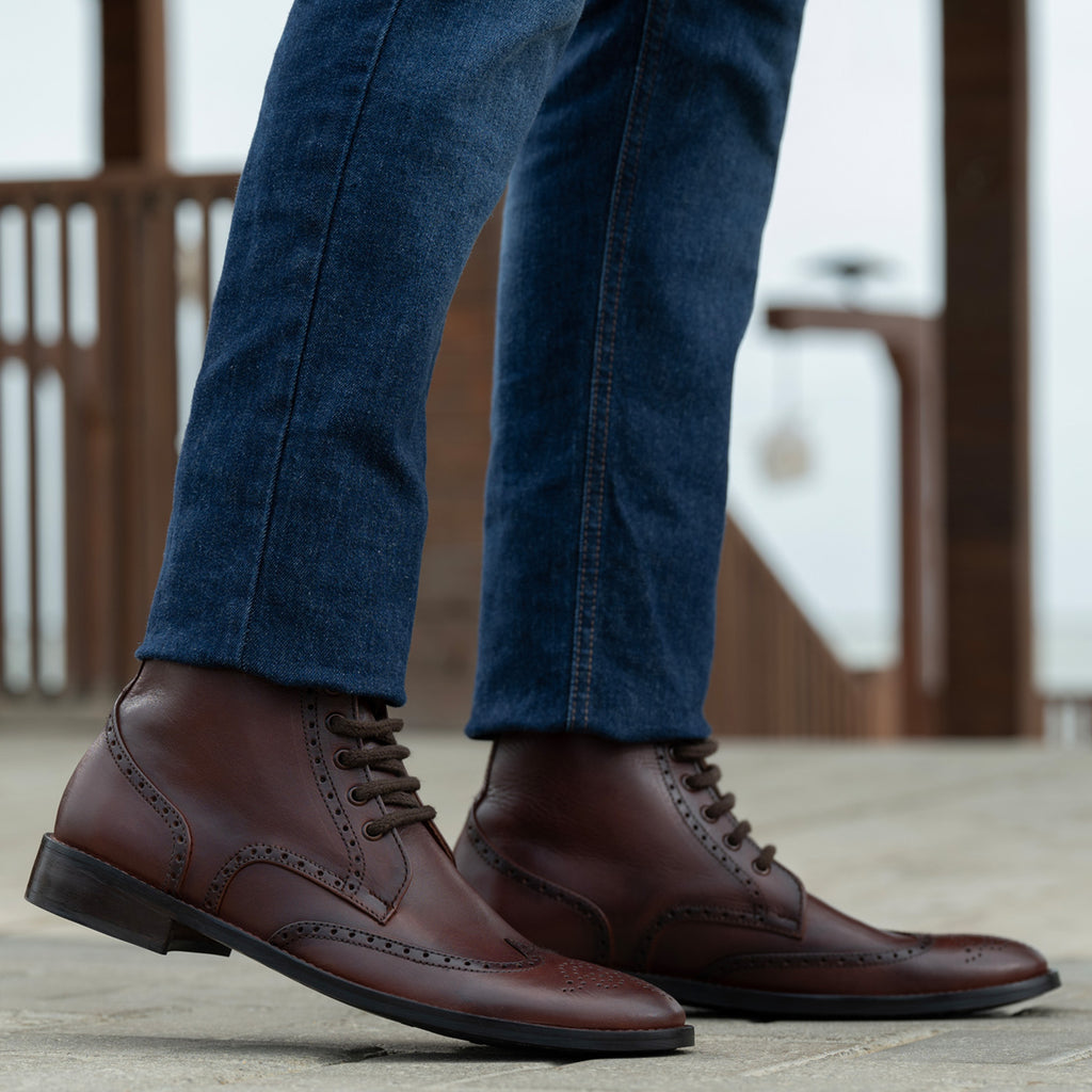 Duster Brogues Derby Brown Burnished Leather Boots - StudGuard