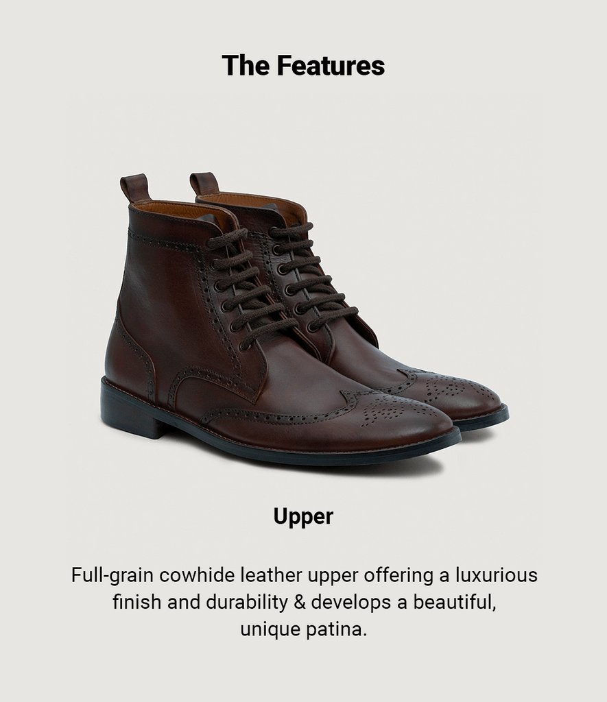 - Full Grain Cowhide Leather Upper
