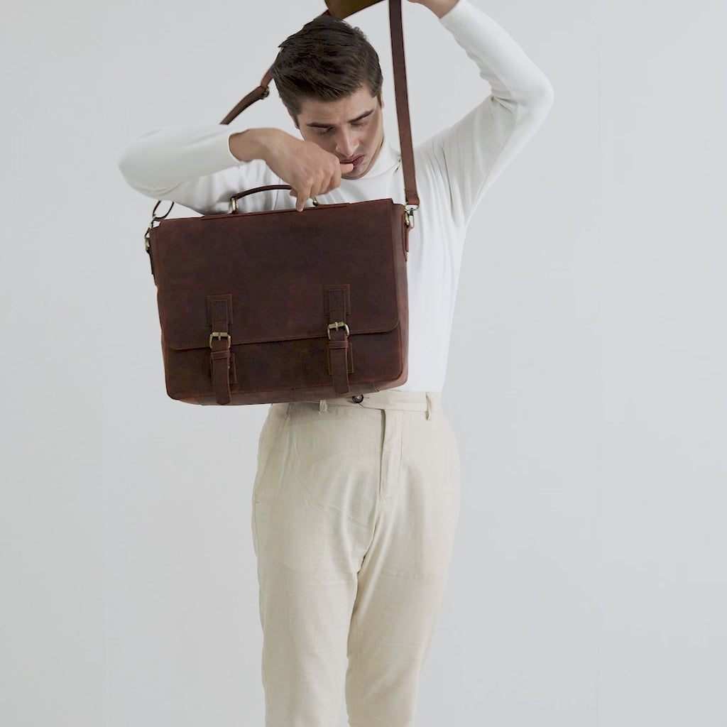 The Cristoph Vintage Distressed Brown Leather Messenger Bag