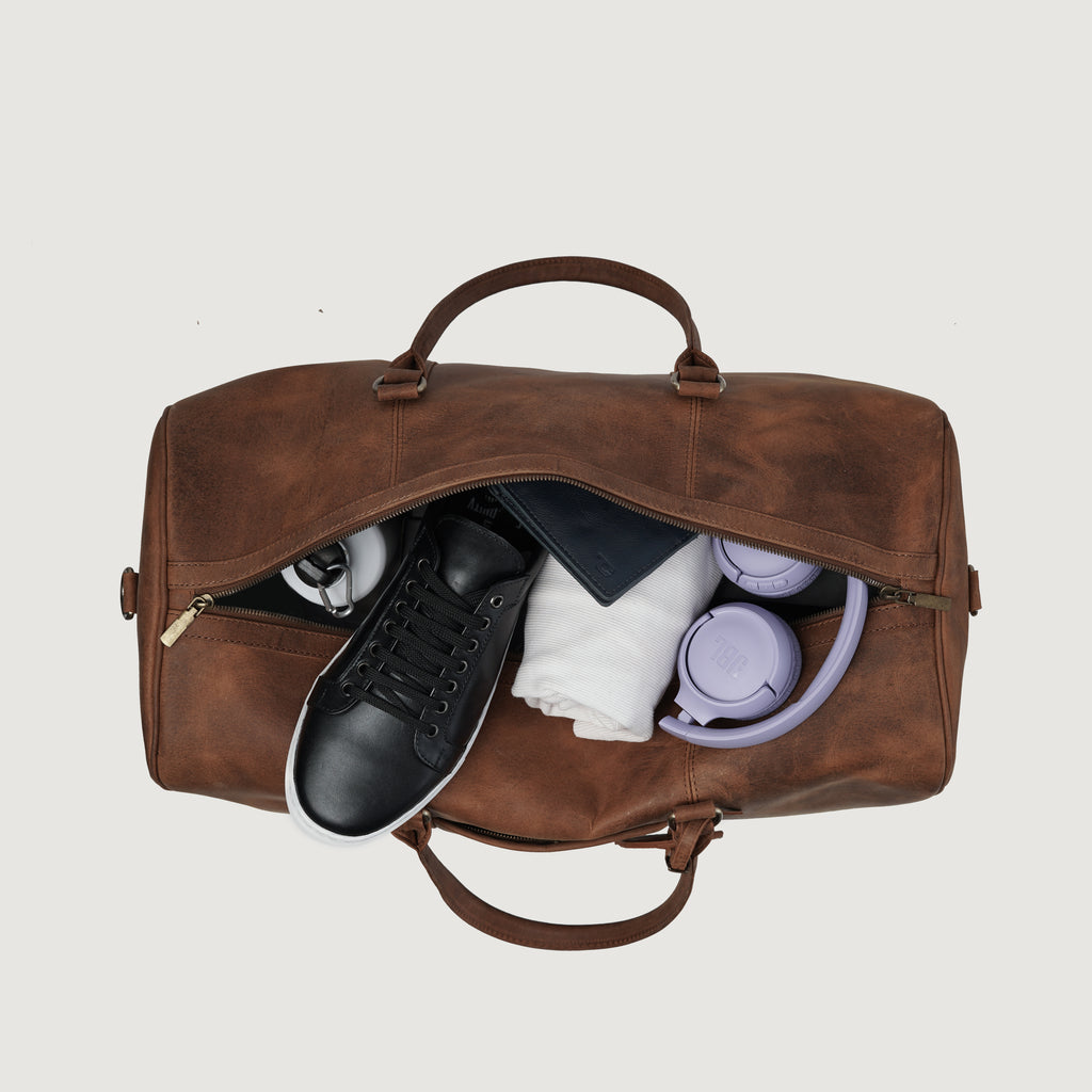 The Darrio Vintage Tan Brown Leather Duffle Bag