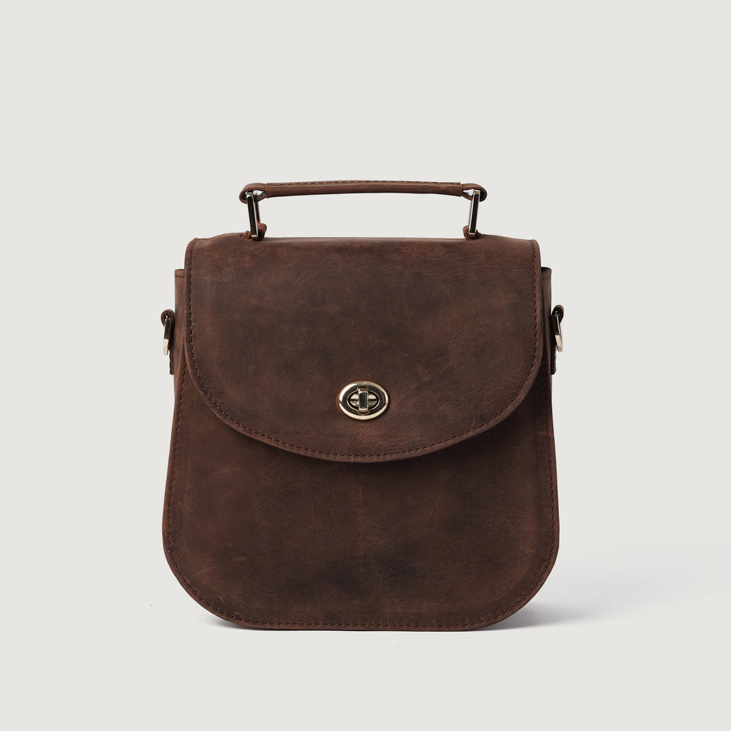 The Sandra Vintage Distressed Brown Leather Saddle Bag