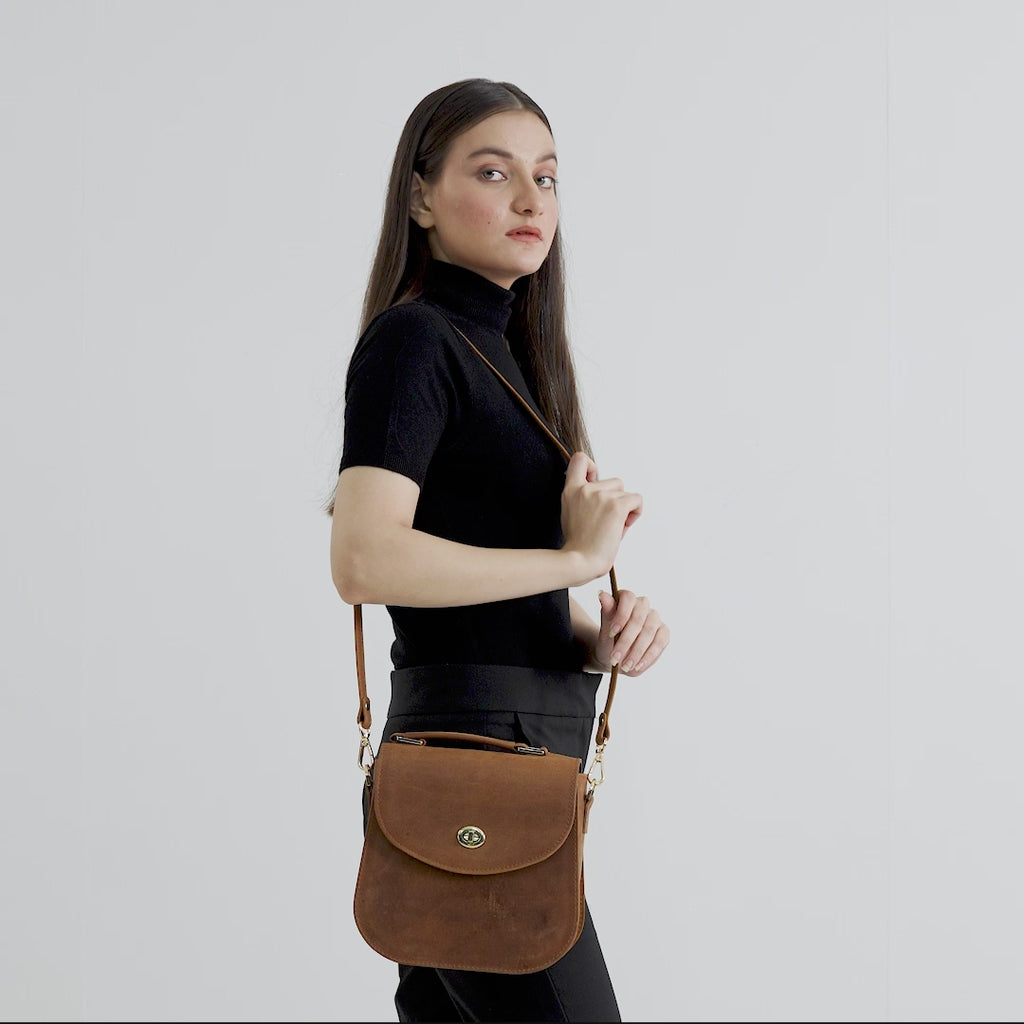 The Sandra Vintage Tan Leather Saddle Bag